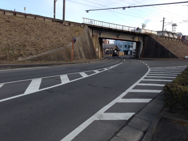 ![]() 坂下交差点もそのまま直進 貨物線のガード下も直進 |